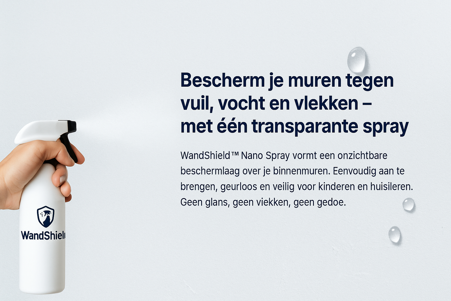 WandShield™ is een transparante nanocoating die je binnenmuren beschermt tegen vocht, vuil, vet en vlekken.